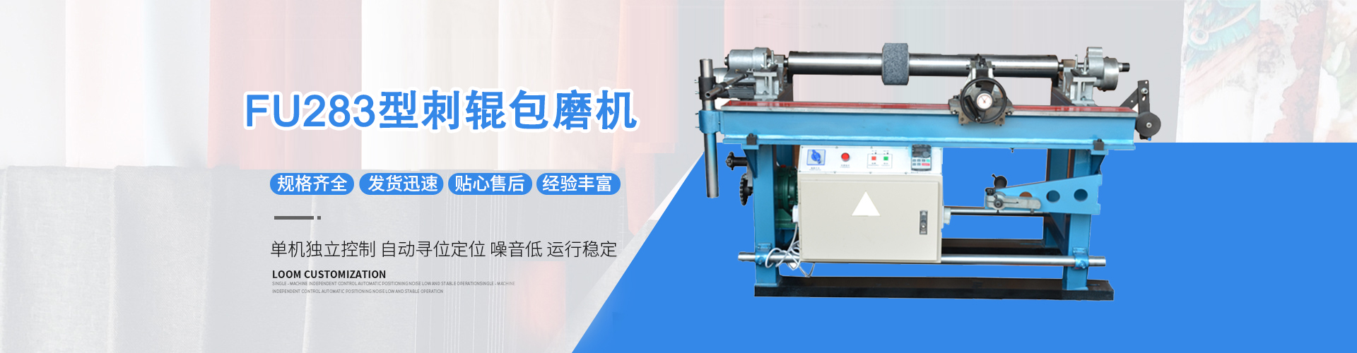 目前生產的新型皮輥房輔機、梳棉輔機、理管機、粗紗頭開松機、錠子加油機、絨輥清潔機及紡織安裝專用工具等系列產品